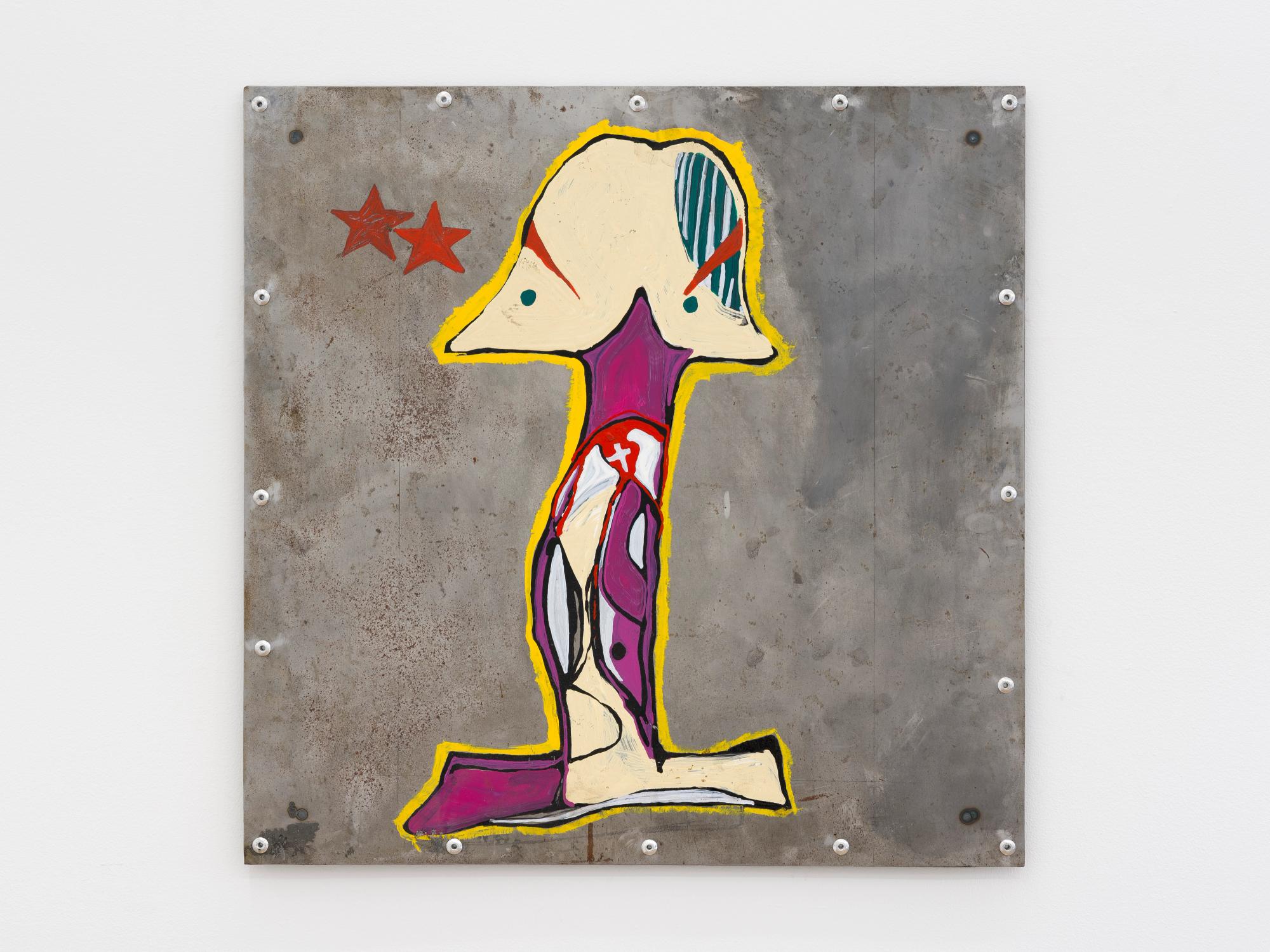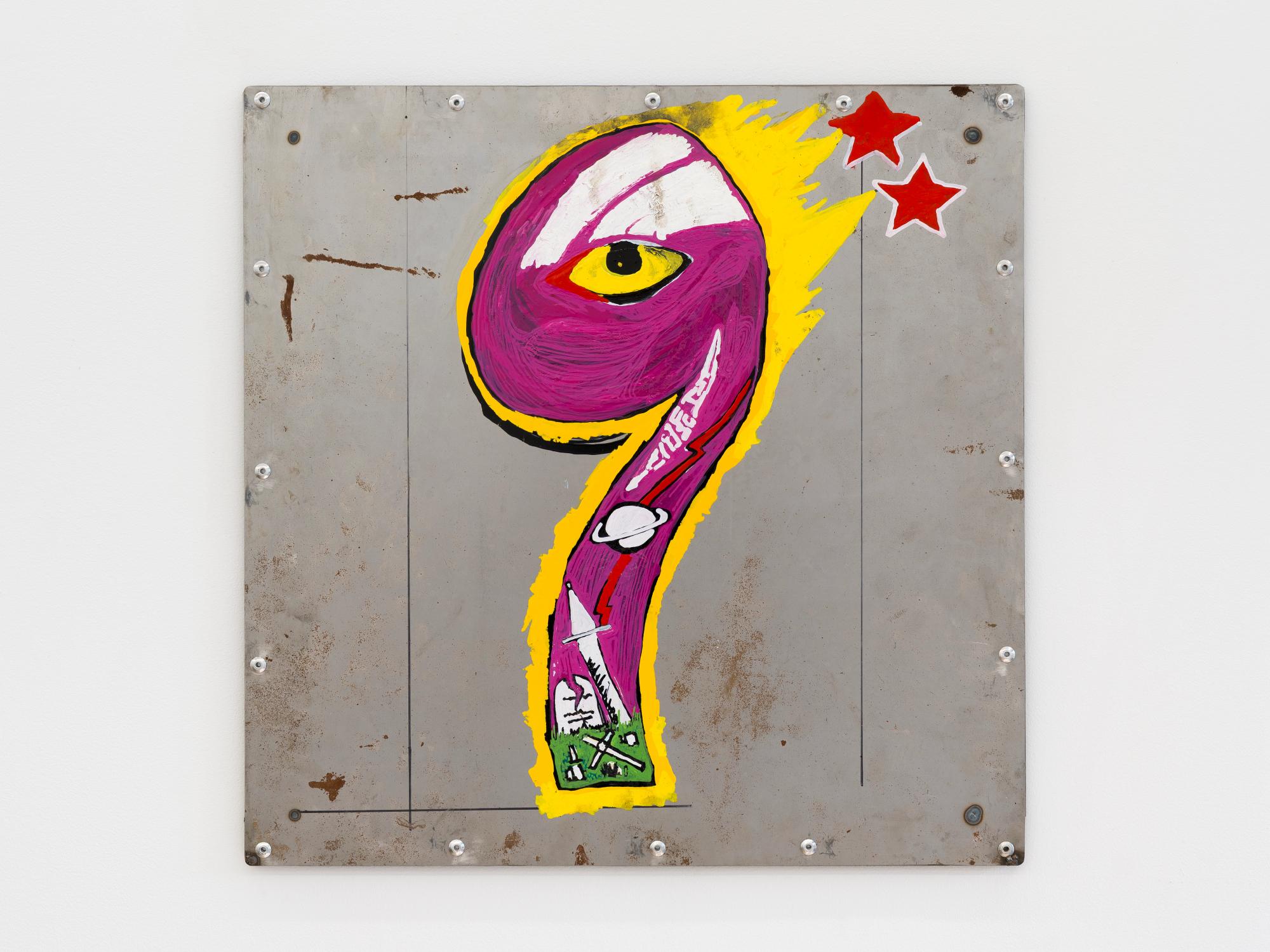 Isaiah Davis, 1999, 2025; steel, enamel, aluminum. 24 x 24 x 0.5 in. Image courtesy of the artist and King's Leap. Photo by Stephen Faught.