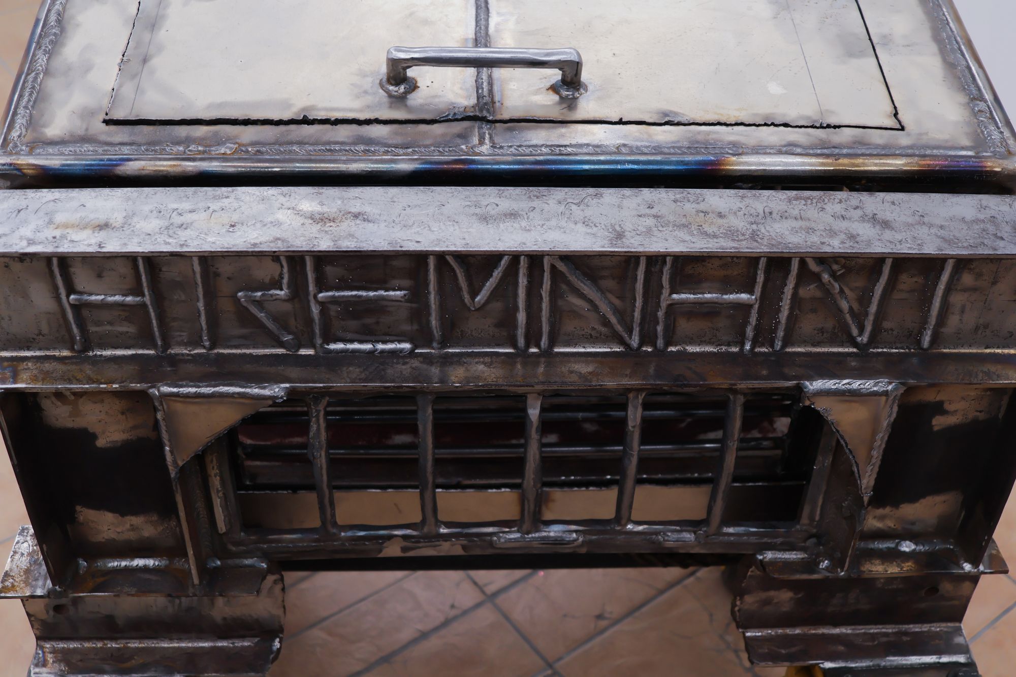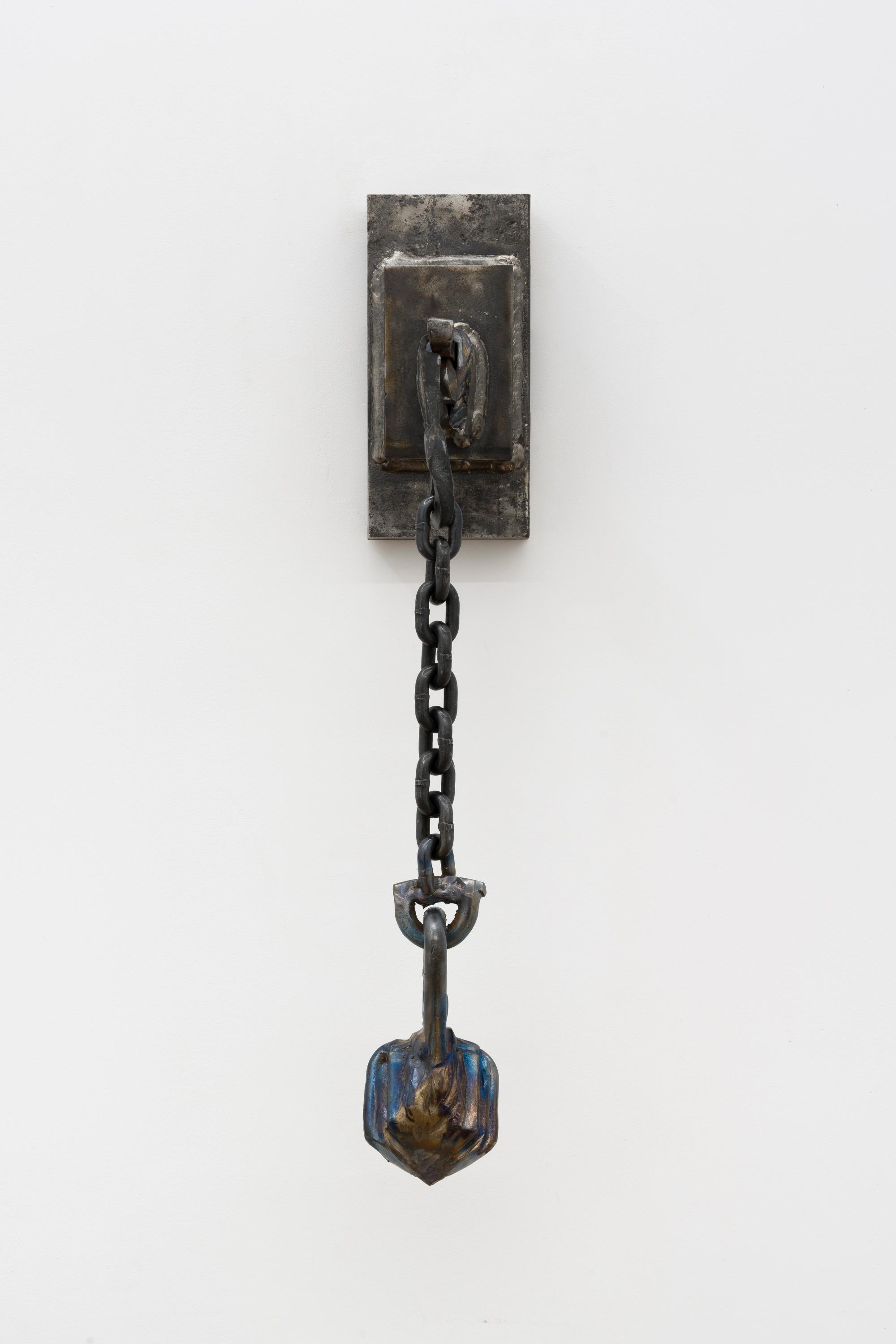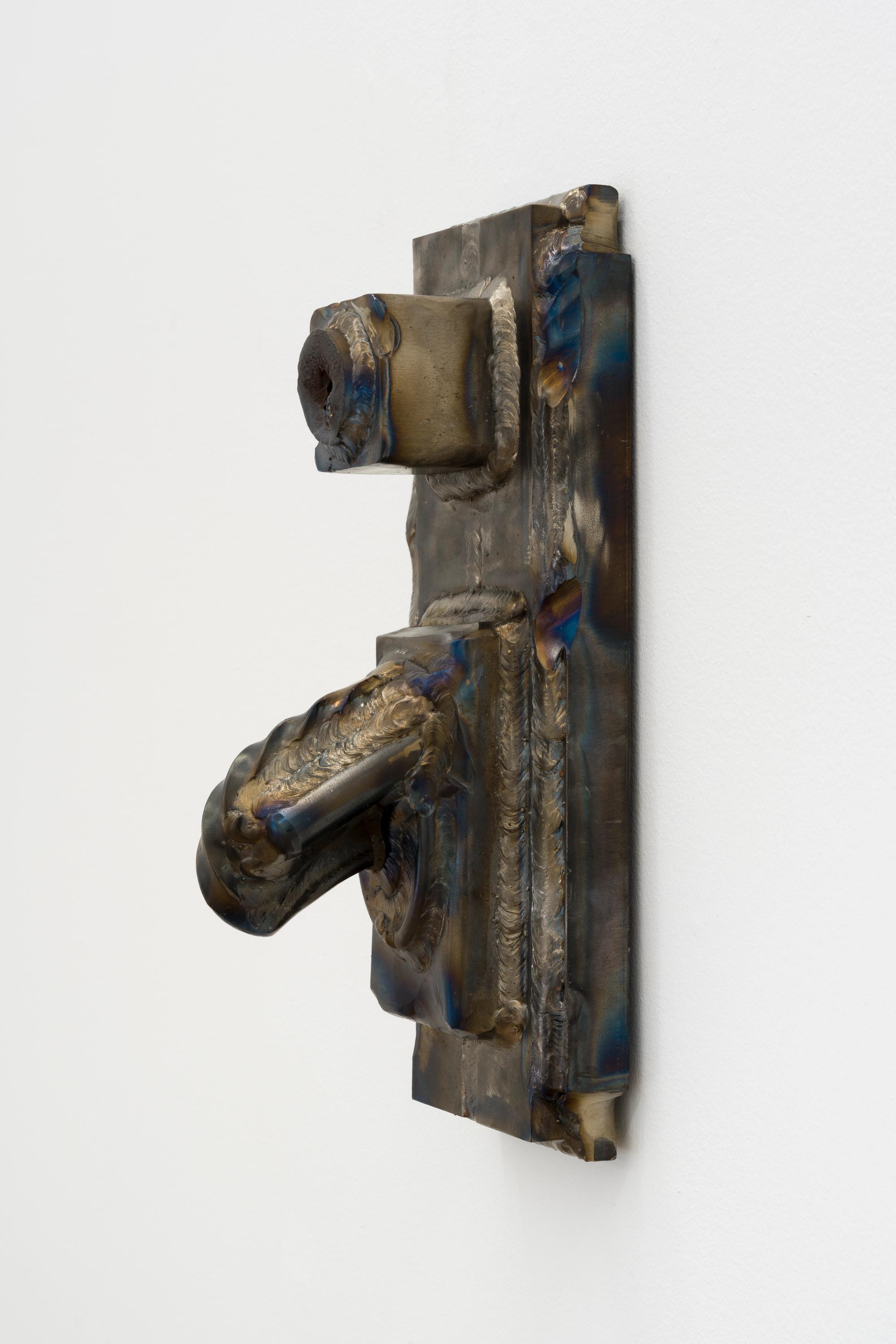 Isaiah Davis, A Series of Sad, Satanic Contracts, 2025; steel. 19 x 17.5 x 3.25 in. Image courtesy of the artist and King's Leap. Photo by Stephen Faught.