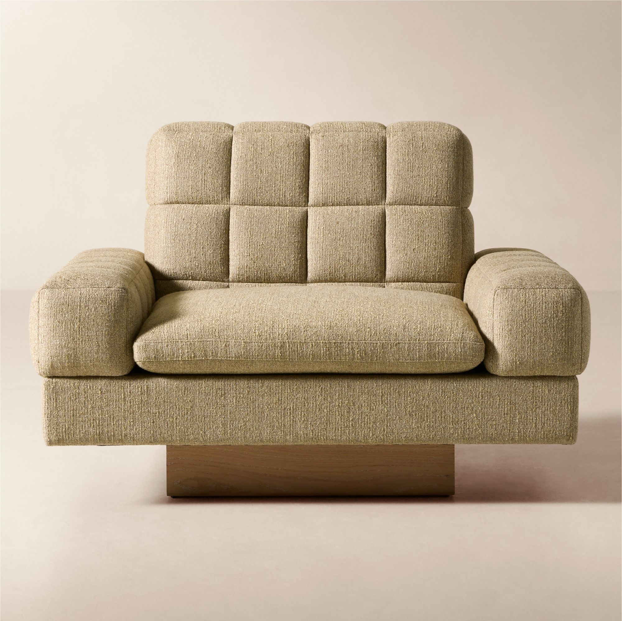 Kanan Light Brown Quilted Fabric Accent Chair by Kravitz Design for CB2. Courtesy CB2.