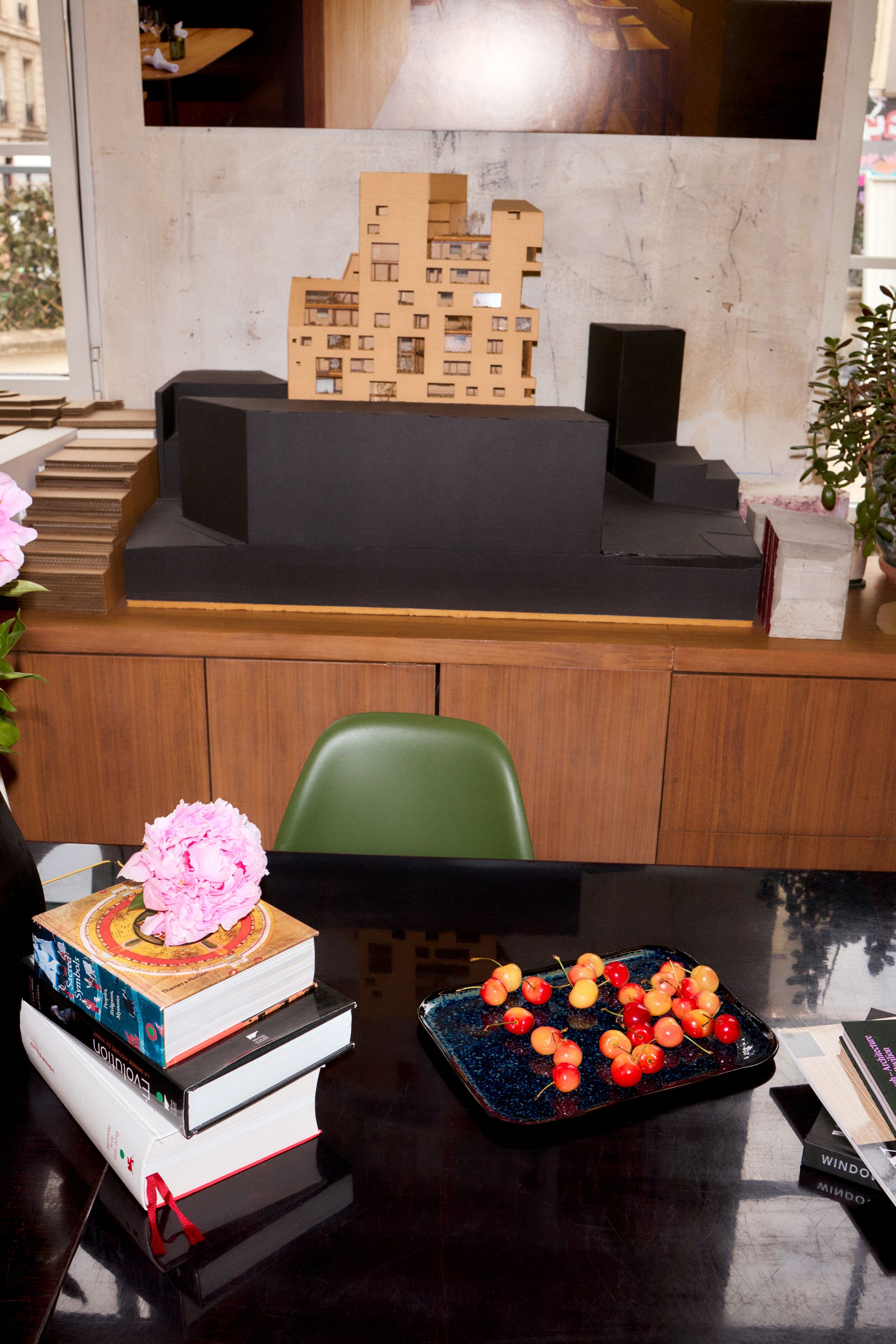 Lina Ghotmeh’s desk in her 11th Arrondissement Paris office. Photo by Lars Brønseth for PIN–UP 39.