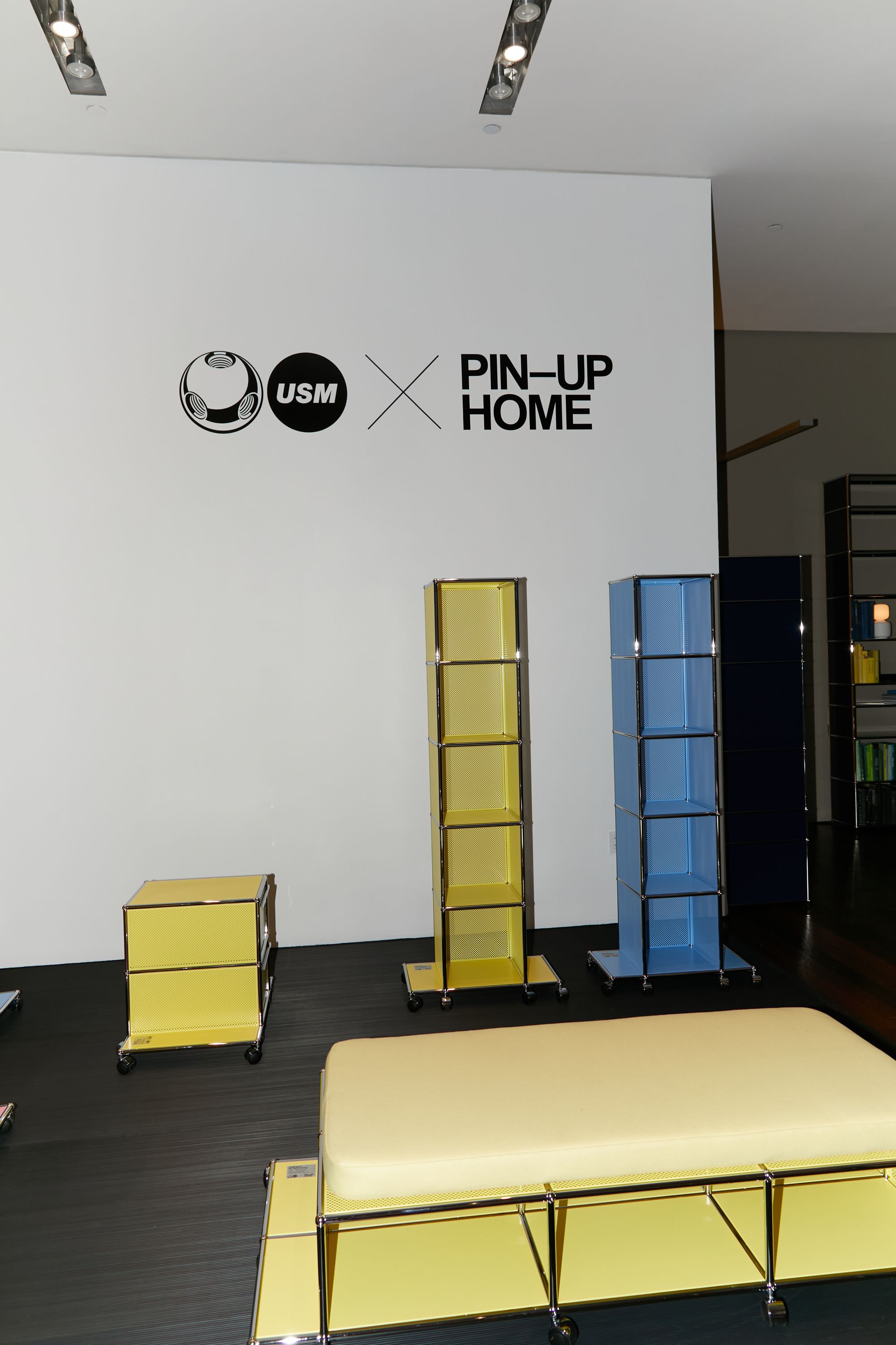 On January 24, 2023, PIN–UP HOME presented its inaugural collection USM NYC BY Ben Ganz in collaboration with USM Modular Furniture. The six-piece collection (18 pieces, if counting all color ways) served as the perfect backdrop for the launch event, as well as its shining centerpiece. Guests sipped on dirty martinis courtesy of Candice Williams, while Skype Williams provided the musical accompaniment. USM NYC BY Ben Ganz will be on view at the USM showroom until the end of February 2023. For individual orders, please go to pinuphome.com or call the showroom at 212-371-1230.